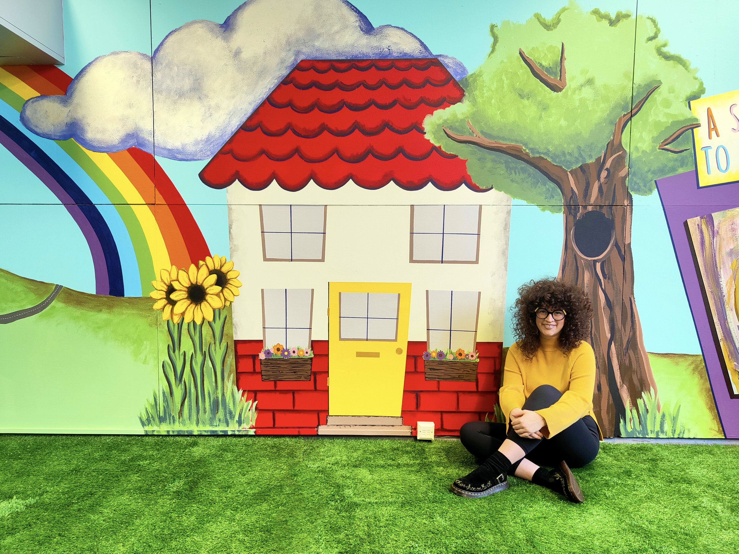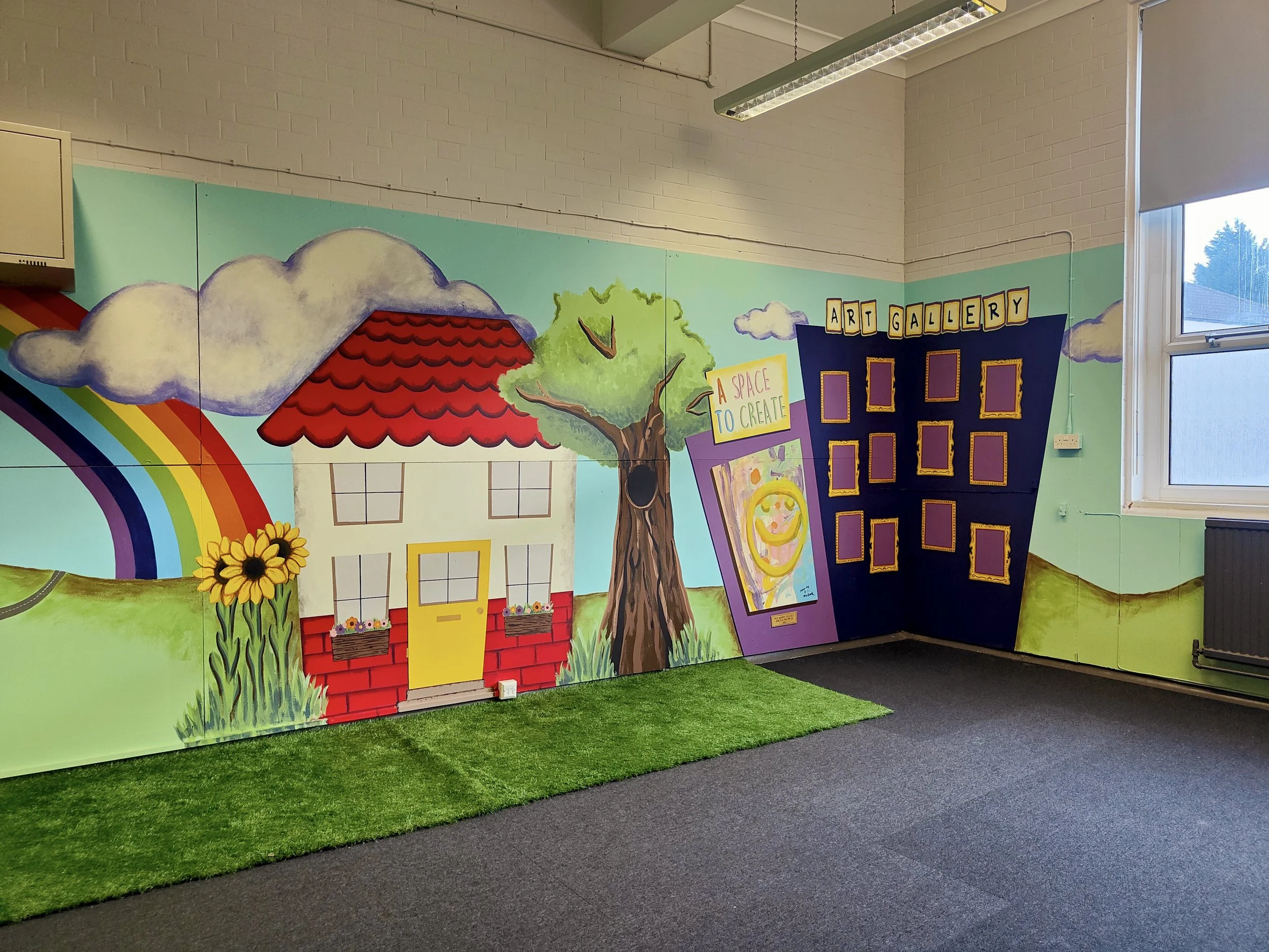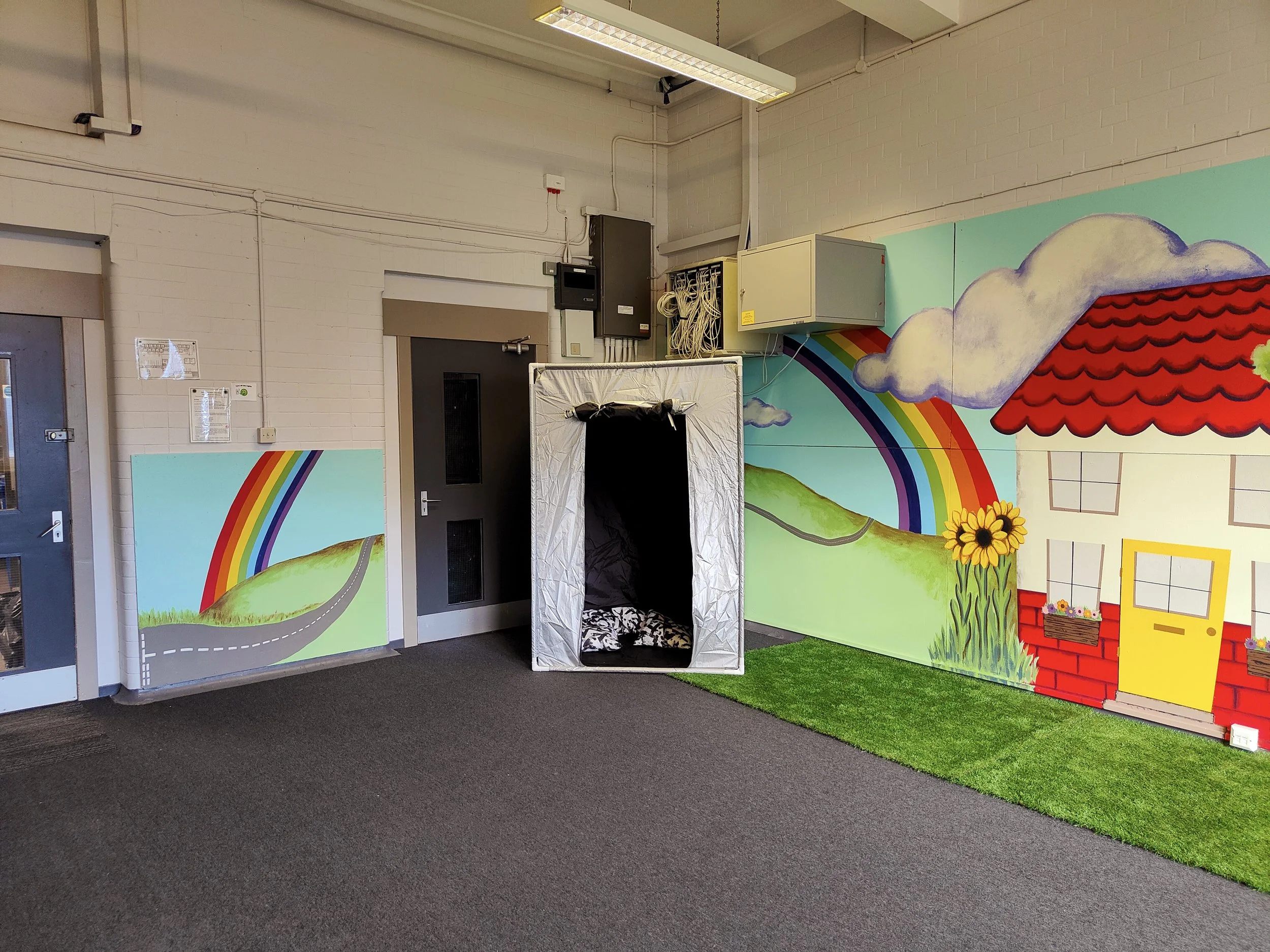‘My Happy Place,’ is my favourite part of the playroom design. It was created by one of the girls in P7 during a few of her art therapy breaks. She always said she wishes she had the confidence to do some ‘big, messy painting’ and I am so proud of her for getting out of her comfort zone and embracing it all.
