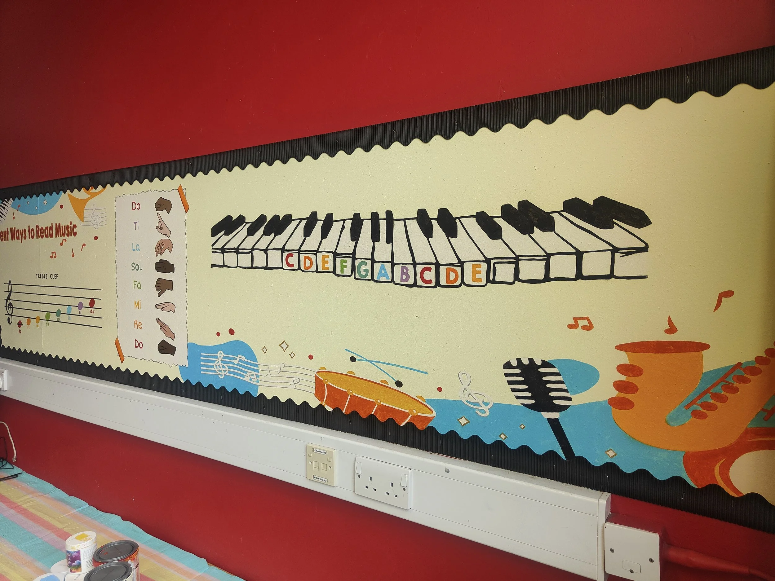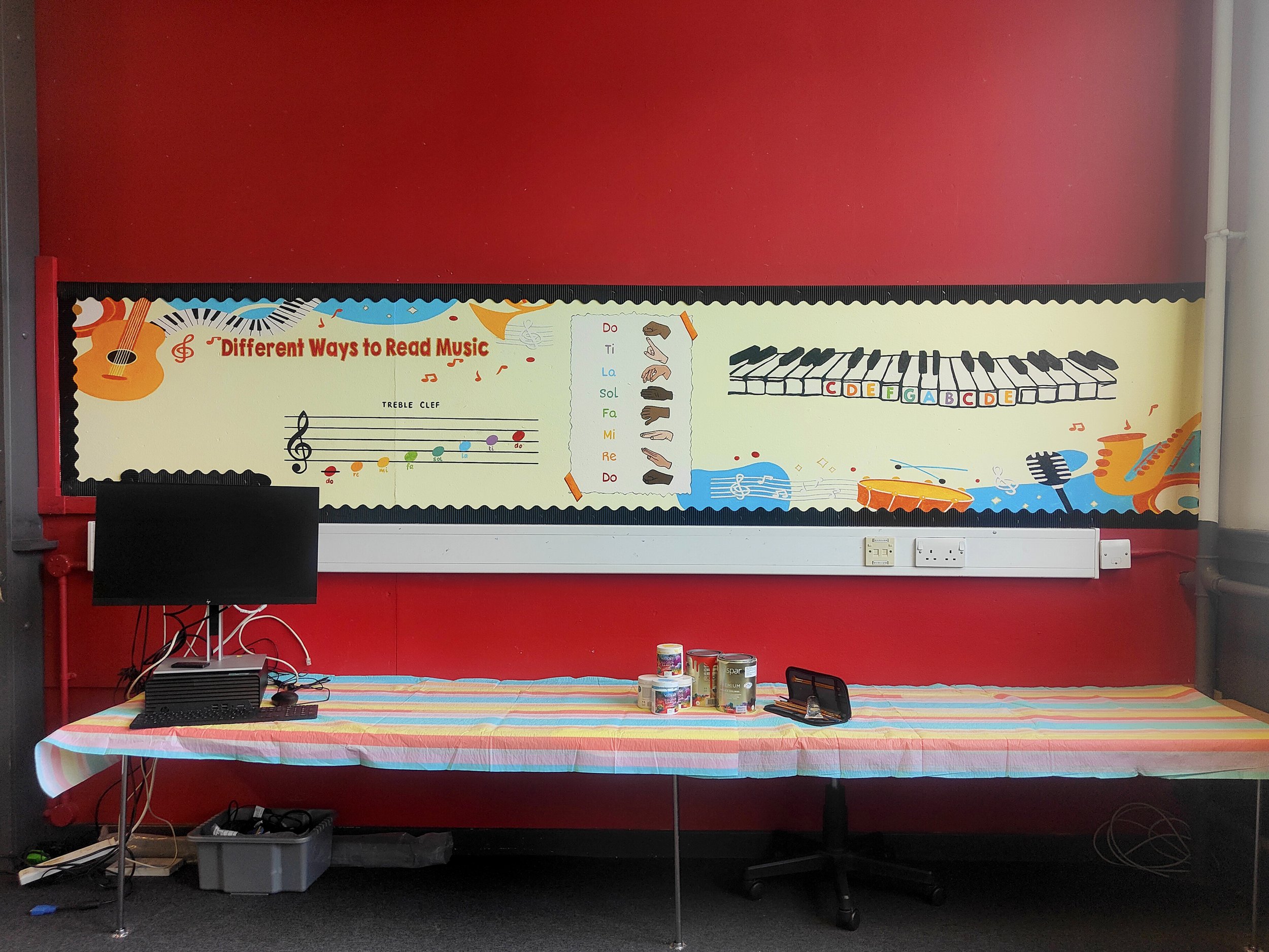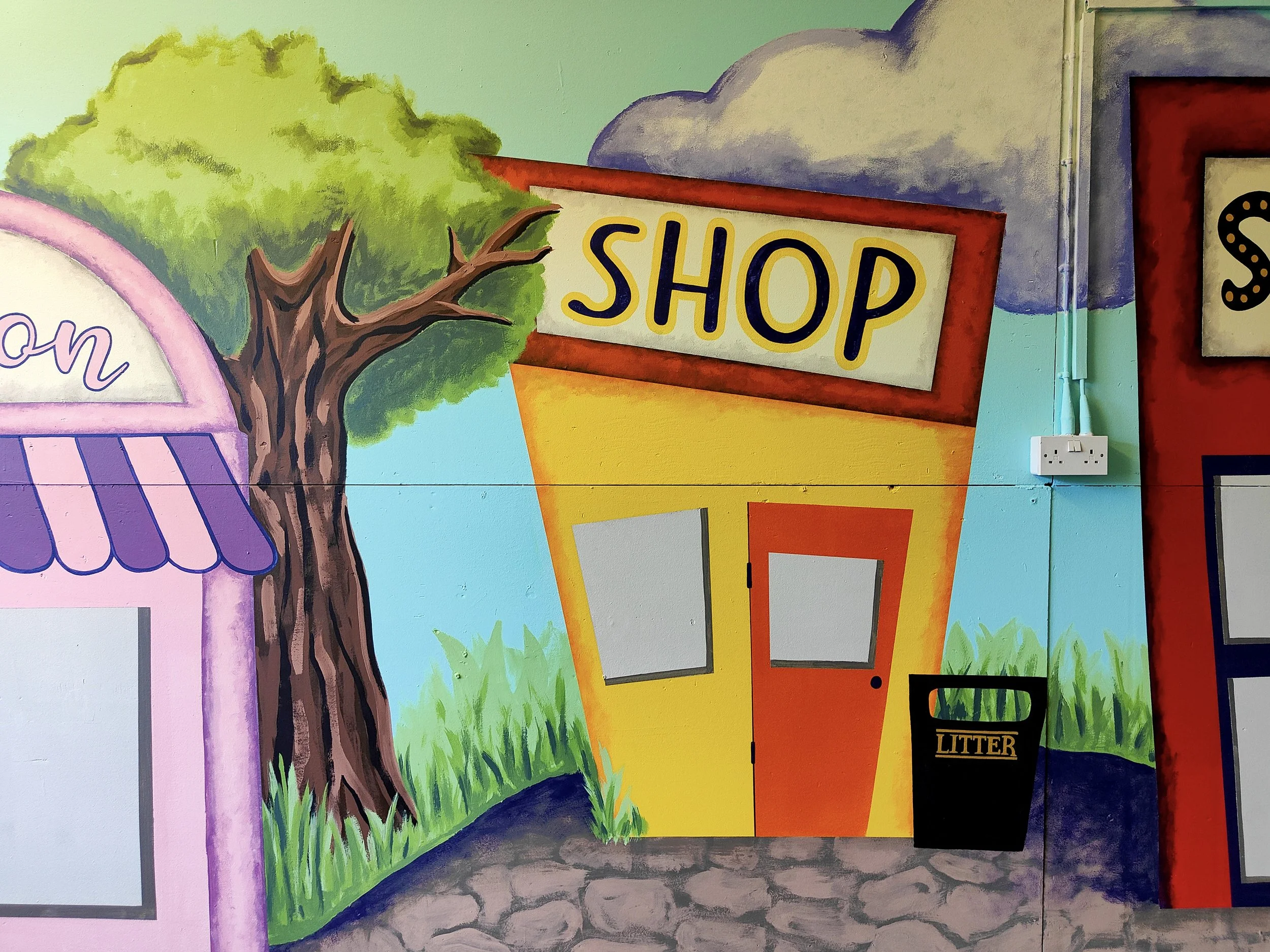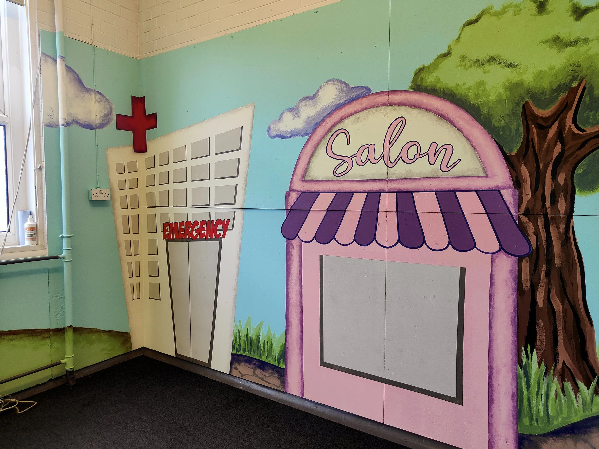 ‘My Happy Place,’ is my favourite part of the playroom design. It was created by one of the girls in P7 during a few of her art therapy breaks. She always said she wishes she had the confidence to do some ‘big, messy painting’ and I am so proud of her for getting out of her comfort zone and embracing it all.